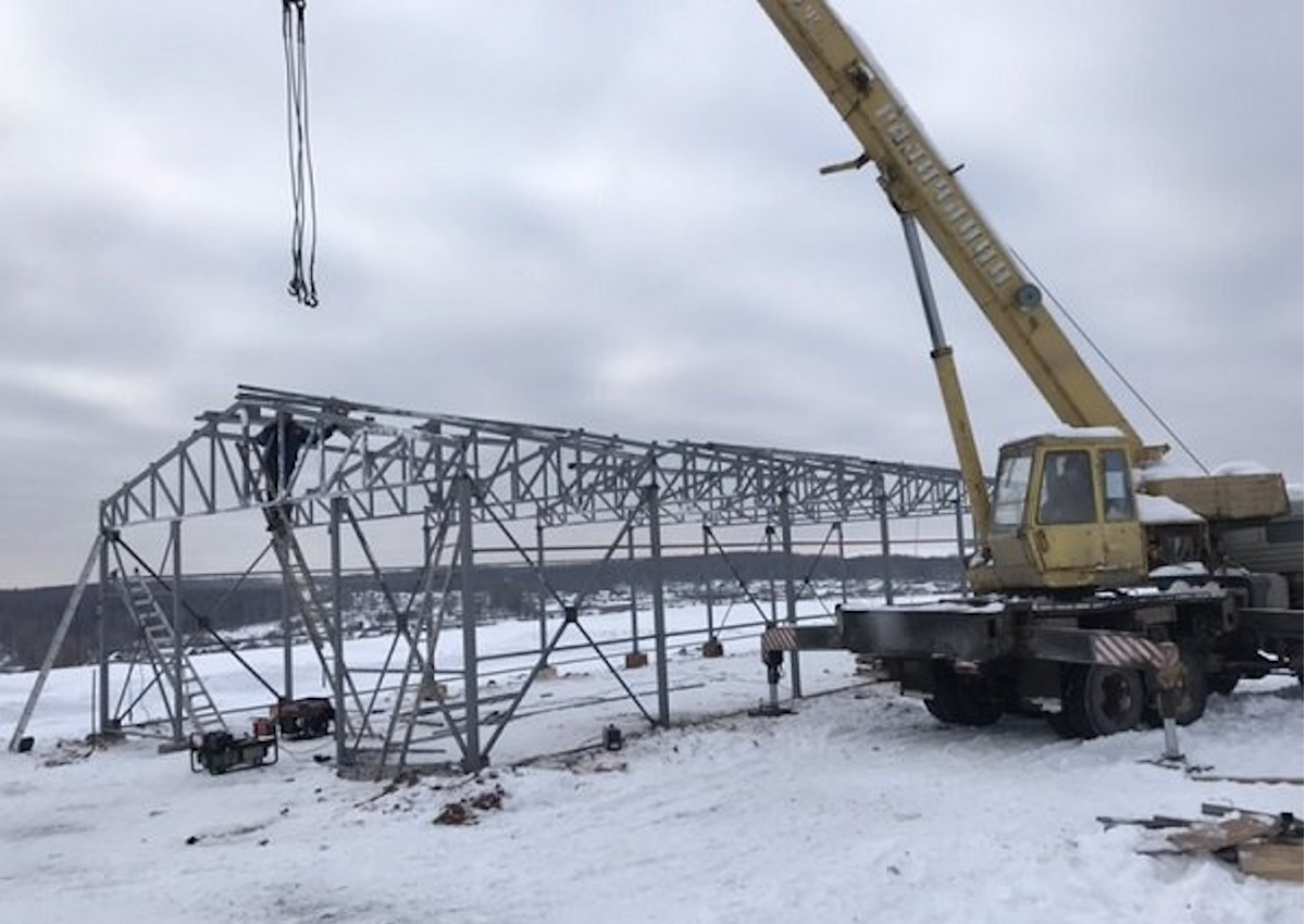 24.12.2025 г.Работы по монтажу прямостенного ангара с двухскатной крышей